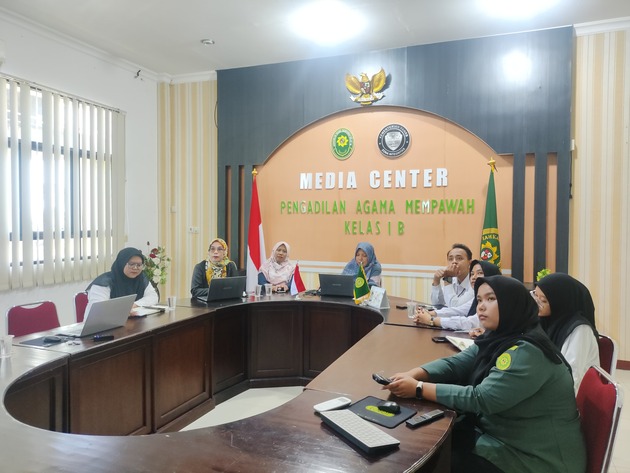 MEMPAWAH – (29/07/2025) Panitera Muda Hukum, Kasubbag Perencanaan, TI & Pelaporan, Pengelola Media Sosial, beserta pegawai yang aktif di sosial media Pengadilan Agama (PA) Mempawah Kelas 1B mengikuti Pelatihan Juru Bicara dan Pengelolaan Media Sosial 4 Lingkungan Peradilan secara daring. Pelatihan ini bertujuan untuk membentuk juru bicara di masing-masing satuan kerja di 4 lingkungan Mahkamah Agung yang dapat berkomunikasi di hadapan publik dengan penuh integritas. Alasan pelatihan ini ialah karena juru bicara mewakili institusi saat memberikan informasi kepada masyarakat dan media sosial menjadi tempat pertama masyarakat untuk memperoleh informasi.